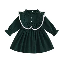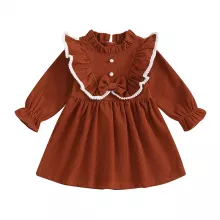 Let your little girl step into the season in sweet, cozy style with this Autumn Corduroy A-Line Dress. Designed to keep her warm, stylish, and comfortable, this dress is perfect for those crisp fall mornings and breezy spring afternoons. The soft corduroy fabric adds a touch of vintage charm, while thoughtful details like the ruffled long sleeves, mock neck, and delicate bow accent make it a true showstopper. Whether it's for a birthday party, a day at preschool, or family photos, this dress brings effortless elegance to any occasion. The A-line silhouette gives your child plenty of room to move and play freely, while the warm, breathable material keeps her snug without overheating. It's available in a range of sizes for toddlers aged 12 months to 5 years, ensuring a perfect fit as she grows.