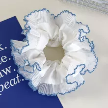 Use our battle tested marketing materials for Blue Lace Ruffle Scrunchie with Plaid Pattern