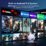 This projector features a built-in Android 11.0 system, giving you access to your favorite apps like YouTube, Hulu, and Flixster without needing extra devices. Download content directly from the app store, stream media on demand, or browse the internet freely. Everything is just a click away for endless entertainment anytime.
