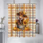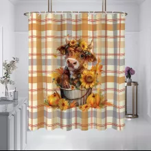 Transform your bathroom into a cozy countryside retreat with this delightful shower curtain featuring a cute cow and bright sunflowers in a warm pastoral style. The gentle, nature-inspired design adds a touch of whimsy and freshness to your daily routine, making every shower feel like a breath of fresh country air. Its soft, inviting colors and cheerful pattern are perfect for anyone who loves rustic, farmhouse decor.