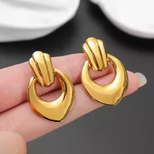 Refined, elegant, and effortlessly chic—these gold stainless steel stud earrings are a perfect match for the modern woman who loves vintage-inspired style with a contemporary edge. With a sleek, niche design and classic gold-tone finish, they offer just the right amount of sophistication for everyday wear or special occasions. Whether you're heading to work, out for brunch, or dressing up for an event, these earrings bring a subtle yet impactful sparkle to your ensemble.