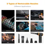 This electric air duster is perfect for tech enthusiasts, remote workers, photographers, and anyone who values cleanliness. Use it to blow out dust from PC cases, clean keyboards, vacuum crumbs from your car seats, or freshen up tight corners at home. It’s even great for outdoor uses like blowing leaves, starting campfires, or inflating gear during travel or camping.