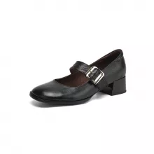 Use our battle tested marketing materials for Genuine Leather Mary Jane Pumps for Women with Chunky Heel and Buckle Strap