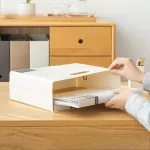 Crafted from durable plastic, this file storage box is lightweight yet strong enough to hold stacks of A4 documents securely. Its smooth, modern finish fits seamlessly into any office aesthetic—whether at work or at home. Use it for quick access to frequently used files or as a long-term storage system for important papers. With this desktop shelf, staying organized has never looked so good.