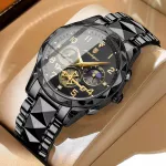 This luxury men’s watch isn’t just about appearance—it’s built to impress inside and out. The quartz movement delivers accurate timekeeping, while the push-button hidden clasp provides a seamless and secure fit. With a moon phase display and auto date function, it brings elegance and functionality together in perfect harmony.