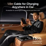 Thanks to its retractable cable extension, this charger reaches both front and back seats effortlessly—making it perfect for families, carpoolers, or anyone who travels with multiple passengers. Whether you're heading out on a long road trip or just navigating your daily commute, this charger ensures that everyone stays connected and charged throughout the ride.