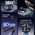Designed with convenience and versatility in mind, it features two built-in retractable cables—Type-C and Lightning or dual Type-C—each stretching up to 31.5 inches for effortless connection. Thanks to the 180° rotating design, you can adjust cable direction to avoid clutter and save space. This charger is a must-have for families, ride-share drivers, or anyone juggling multiple devices on the go.
