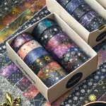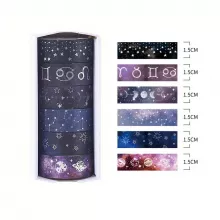 Whether you're decorating a bullet journal, wrapping a gift, personalizing school supplies, or adding flair to handmade cards, this washi tape set is the perfect tool. With star-filled skies, soft gradients, and metallic accents, each design offers a little slice of the night sky to spark your imagination.