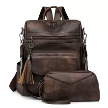 Use our battle tested marketing materials for Large Two-Toned Brown Leather Backpack for Women