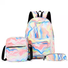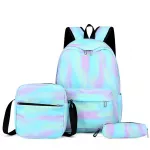 Let your child's school style shine with this vibrant 3-piece tie-dye backpack set, perfect for students who love playful design and practical features. This fun and functional set includes a spacious school backpack, a matching insulated crossbody lunch bag, and a coordinating pencil case—all crafted to handle the demands of daily school life while adding a splash of personality. With soft pastel tie-dye tones and a lightweight yet sturdy build, this set is both eye-catching and durable.