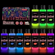 Bring a whole new dimension to your creativity with this 10-color Glow in the Dark Acrylic Paint Set. Each 2-in-1 paint glows brightly in the dark and shines vividly in daylight, making it a must-have for artists, crafters, and DIY lovers. With 2oz (60ml) of paint per bottle, you'll have plenty of vibrant, waterproof color to cover your projects with brilliance.