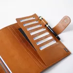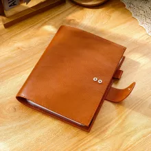 The notebook opens wide to 15.7 inches by 9.4 inches and closes compactly at 7.6 inches by 9.4 inches—perfect for carrying in a tote, backpack, or briefcase. Featuring a secure double snap closure, it keeps your notes protected while on the move. The cover is soft in hand but holds its shape, thanks to high-quality vegetable tanning that enhances both form and function.