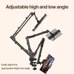 Meet your new favorite desk companion — a sleek metal desktop stand designed to hold tablets and smartphones from 4.6 to 12.9 inches with ease. Crafted from strong carbon steel and cushioned with soft silicone grips, this stand offers both durability and device protection. Its long arm design and 360° rotation provide ultimate flexibility, allowing you to position your device exactly how you want it for comfortable viewing, video calls, or hands-free browsing.