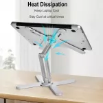 This laptop stand stands out with its foldable design, making it easy to store and carry in the included travel bag. The hollowed-out surface promotes better airflow, keeping your laptop cool during extended use. The sturdy triangular support structure delivers stability and can safely hold devices weighing up to 22 pounds, so your laptop stays secure without wobbling. Silicone pads protect your device from scratches while preventing slipping during use.