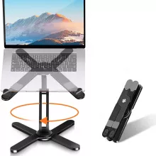 Boost your productivity and comfort with this sleek foldable laptop stand designed to support laptops from 10 to 17 inches. Crafted from durable aluminum alloy, this lightweight stand is perfect for anyone who needs a reliable and portable solution for working on the go or at home. Its modern telescopic design offers adjustable height and 360° rotation, letting you find the perfect angle to reduce neck and wrist strain while improving your posture.