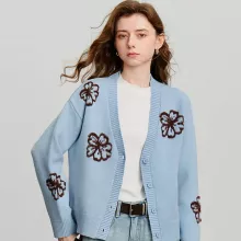 Use our battle tested marketing materials for Women’s Green Velvet V-Neck Single Breasted Woolen Cardigan