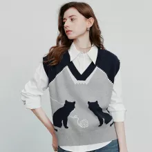 Use our battle tested marketing materials for Women’s Cat Jacquard V-Neck Sleeveless Pullover Sweater