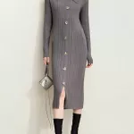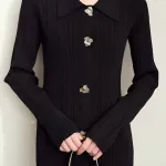 Step into the season of elegance with this stunning slim-fit knitted dress designed for modern women who embrace style and sophistication. The Retro Lapel Metal Buckle Knitted Dress offers a seamless blend of vintage-inspired charm and contemporary flair, making it the perfect choice for any autumn occasion. With its exquisite details, this mid-calf dress delivers both comfort and class, whether you’re attending a party, a dinner, or a special evening out. Crafted from a blend of polyester, nylon, and viscose, this dress provides a slight stretch, ensuring it fits comfortably and moves with your body. The turn-down collar and button-down design add a touch of classic style, while the metal buckle enhances its overall elegance. Available in a timeless solid color, this dress exudes sophistication and versatility.Key Features