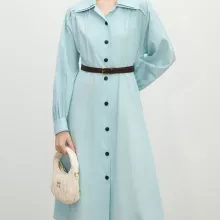 Use our battle tested marketing materials for Elegant Women's Blue Long Sleeve A-Line Dress with Sashes