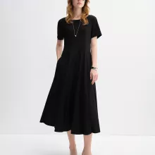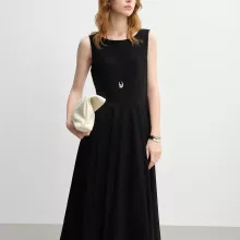 Use our battle tested marketing materials for Minimalist Sleeveless Black A-Line Dress for Women - Casual Mid-Calf Cotton Dress