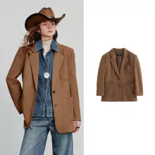 Use our battle tested marketing materials for Retro Brown Suede Women's Blazer – Lightweight Single Breasted Coat