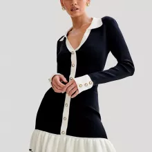 Use our battle tested marketing materials for Elegant V-Neck Ruffled Knit Mini Dress for Women - Stylish Autumn Fashion
