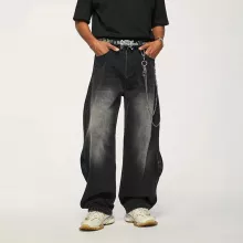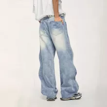 Use our battle tested marketing materials for Baggy Wide Leg Boyfriend Jeans - Vintage Washed Blue Denim Trousers, Plus Size