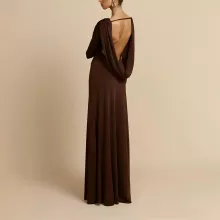Embrace your confidence and elegance with this deep V-neck backless maxi dress. Crafted for those special nights, this figure-hugging dress is designed to turn heads at any party or club event. Featuring a flattering high waist and a sexy backless design, it adds a touch of allure while keeping you effortlessly chic. The long sleeves provide balance to the daring cut, making it the perfect dress for autumn soirées.Key Features