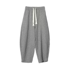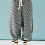 These striped carrot pants are more than just another piece of clothing—they’re designed for ultimate comfort and style. The wide-leg cut and loose fit provide ample room for movement, while the elastic waist ensures a secure yet flexible fit. The slight stretch in the fabric makes them perfect for both active days and relaxing moments, offering just the right balance of ease and support. What makes these pants truly special is their modern, Japanese-inspired style. The unique lace-up detail adds a playful element to the overall design, setting these pants apart from the usual casual wear. Whether you're running errands, heading out for a lunch date, or just lounging around, these pants are versatile enough to take you from day to night with ease.Make a Statement This Season