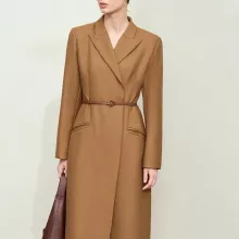 Use our battle tested marketing materials for Minimalist Wool Long Coat with Lapel Collar and Metal Detail for Women