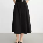 This skirt features a wide, empire-style waistband that sits high on the waist, creating a flattering silhouette for every body type. Its loose A-line shape flows gracefully down to a mid-calf length, offering modest coverage with a feminine touch. The solid color design keeps it versatile — pair it with tucked-in blouses, sweaters, or simple tees and sneakers for endless styling possibilities.Where and When to Wear It?