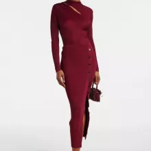 Use our battle tested marketing materials for Elegant Cutout Knit Midi Dress for Women – Slim Fit, Long Sleeve, Office Chic