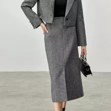 Use our battle tested marketing materials for Chic Wool Blend Midi Skirt for Women - Elegant Office Wear