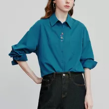 Use our battle tested marketing materials for Women’s Long Sleeve Cotton Shirt with Dog Embroidery – Autumn Office Casual