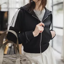 Use our battle tested marketing materials for Women's Black Zip Hoodie Cardigan – Striped Streetwear Jacket for Spring