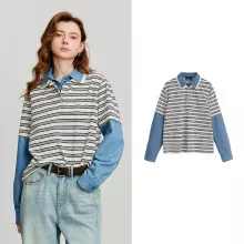 Use our battle tested marketing materials for Autumn Women's Striped Patchwork Denim Casual Pullover Hoodie