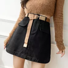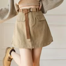 Use our battle tested marketing materials for Chic High Waist Khaki Mini Skirt with Belt – Slim Fit A-Line Style