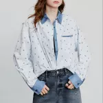 This blouse is your go-to piece for seasonal style with personality. The subtle stripe design paired with the statement bowknot makes it stand out in just the right way. It's ideal for cooler months — pair it with high-waisted trousers, sleek denim, or a midi skirt for a variety of chic looks. The denim patchwork adds a trendy, casual twist that takes it beyond the basics and into something truly memorable. Whether you're dressing it up for a day at work or wearing it casually on a weekend stroll, this blouse strikes the perfect balance between sophistication and ease.Step Into the Season with Confidence