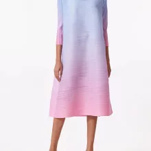 Use our battle tested marketing materials for Elegant Gradient Pleated Mid-Calf Turtleneck Dress with Full Sleeves