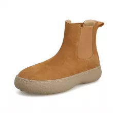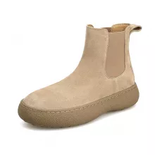 Use our battle tested marketing materials for Cow Suede Chelsea Boots – Round Toe, Slip-On, Thick Heel Ankle Booties