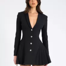 Use our battle tested marketing materials for Chic Black Blazer Mini Dress for Women - Stylish V-Neck Pleated Dress