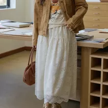 Use our battle tested marketing materials for Vintage Light Brown Denim Jacket for Women - Stylish Embroidered Outerwear
