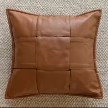 Use our battle tested marketing materials for Premium Leather Woven Cushion Cover - Maillard Brown Luxury Boho Pillow for Sofa, Couch, and Bedroom