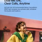 - Dual-Mic ENC: Clear calls even in busy surroundings