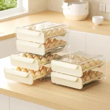 Say goodbye to cluttered fridge shelves with this double-layer egg storage box, designed to neatly hold and protect your eggs in your kitchen refrigerator. Its smart drawer-style design fits perfectly inside fridge compartments, helping you maximize space while keeping eggs safe from accidental cracks. This practical storage solution is a must-have for every home looking to keep the kitchen tidy and organized.