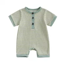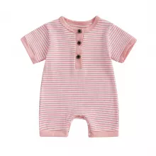 Use our battle tested marketing materials for Newborn Baby Striped Short Sleeve Romper with Button Front Playsuit