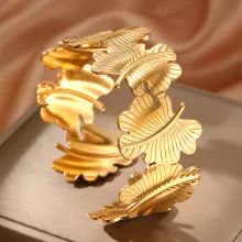 Use our battle tested marketing materials for Stainless Steel Leaf-Shaped Open Bangle - Unisex Wrist Accessory