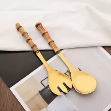 Use our battle tested marketing materials for Gold Long Handle Serving Spork Set – Stainless Steel & Bamboo Cutlery