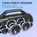 Turn any gathering into an unforgettable event with our 130W portable Bluetooth party speaker. Designed for music lovers and entertainers alike, it delivers powerful, room-filling sound through a 3-way sound system featuring dual tweeters, mid-tweeters, and woofers for deep bass, clear mids, and crisp highs. Whether you’re hosting an outdoor BBQ, a lively house party, or a karaoke night, this speaker keeps the energy high and the sound quality unmatched.