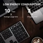 Equipped with three-key zone functionality and multifunctional multimedia buttons, this keyboard makes controlling music, web browsing, and video calls more convenient. With just a press, you can adjust volume, play or pause media, or access shortcuts, streamlining your workflow and boosting efficiency. A quick 1.5-hour charge provides over a week of continuous use, eliminating the need for frequent battery changes.
